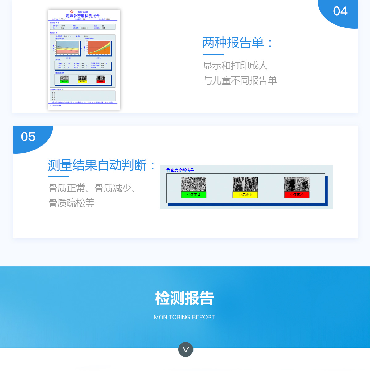 ■ 軟件優(yōu)勢::BMD-A系列超聲骨密度檢測儀一臺儀器裝配有智能分析系統(tǒng),經(jīng)濟(jì)實用??蓽y量0-100歲人群。