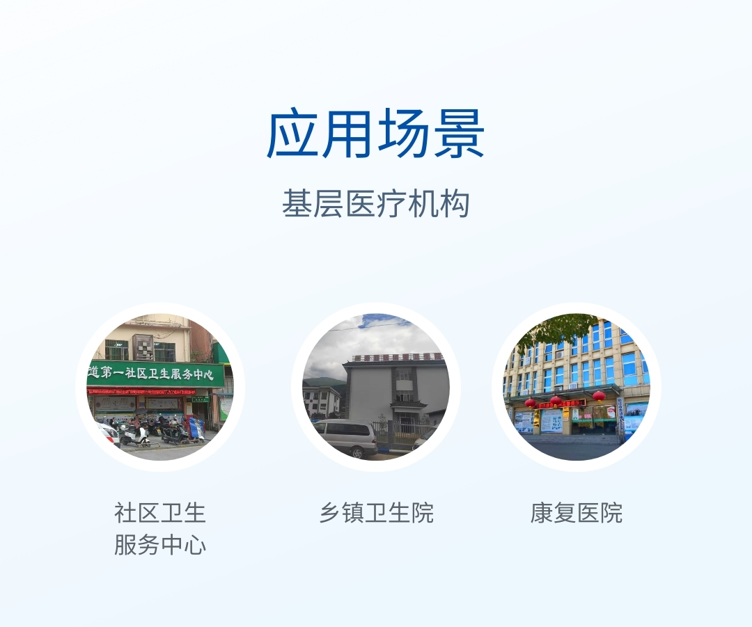 產(chǎn)品用途:本儀器適合社區(qū)服務(wù)中心、鄉(xiāng)鎮(zhèn)衛(wèi)生院、一級民營醫(yī)院等基層醫(yī)療機(jī)構(gòu)使用,同時適用于基層??漆t(yī)療機(jī)構(gòu)如婦幼保健所、健康小屋、骨科醫(yī)院、老年病醫(yī)院、康復(fù)醫(yī)院、體檢中心等使用。